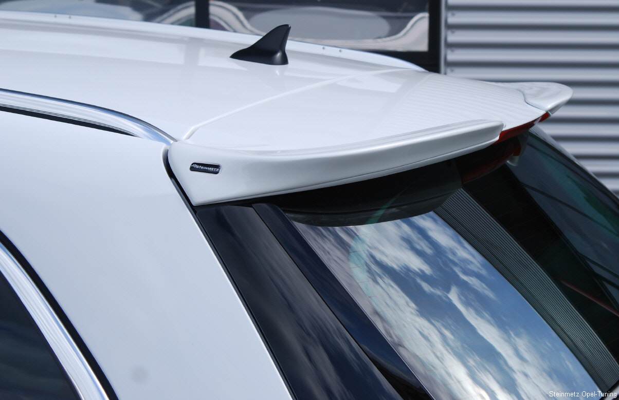 For the roof of the Insignia SportsTourer by Steinmetz, a two-piece spoiler has been developed which, in conjunction with the signature Steinmetz exhaust tailpipe, gives the rear a more muscular appearance.